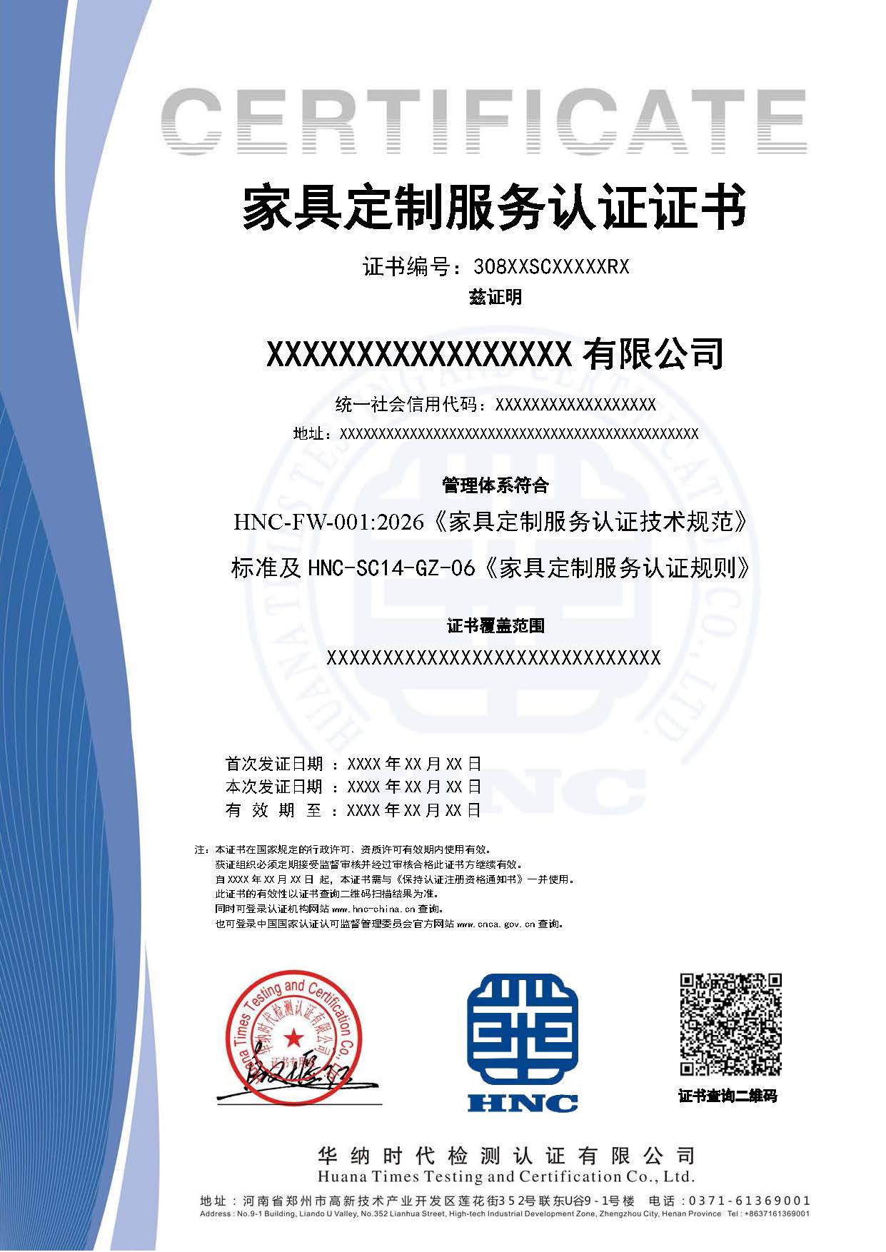 HNC-FW-001:2026 《家具定制服务认证技术规范》
