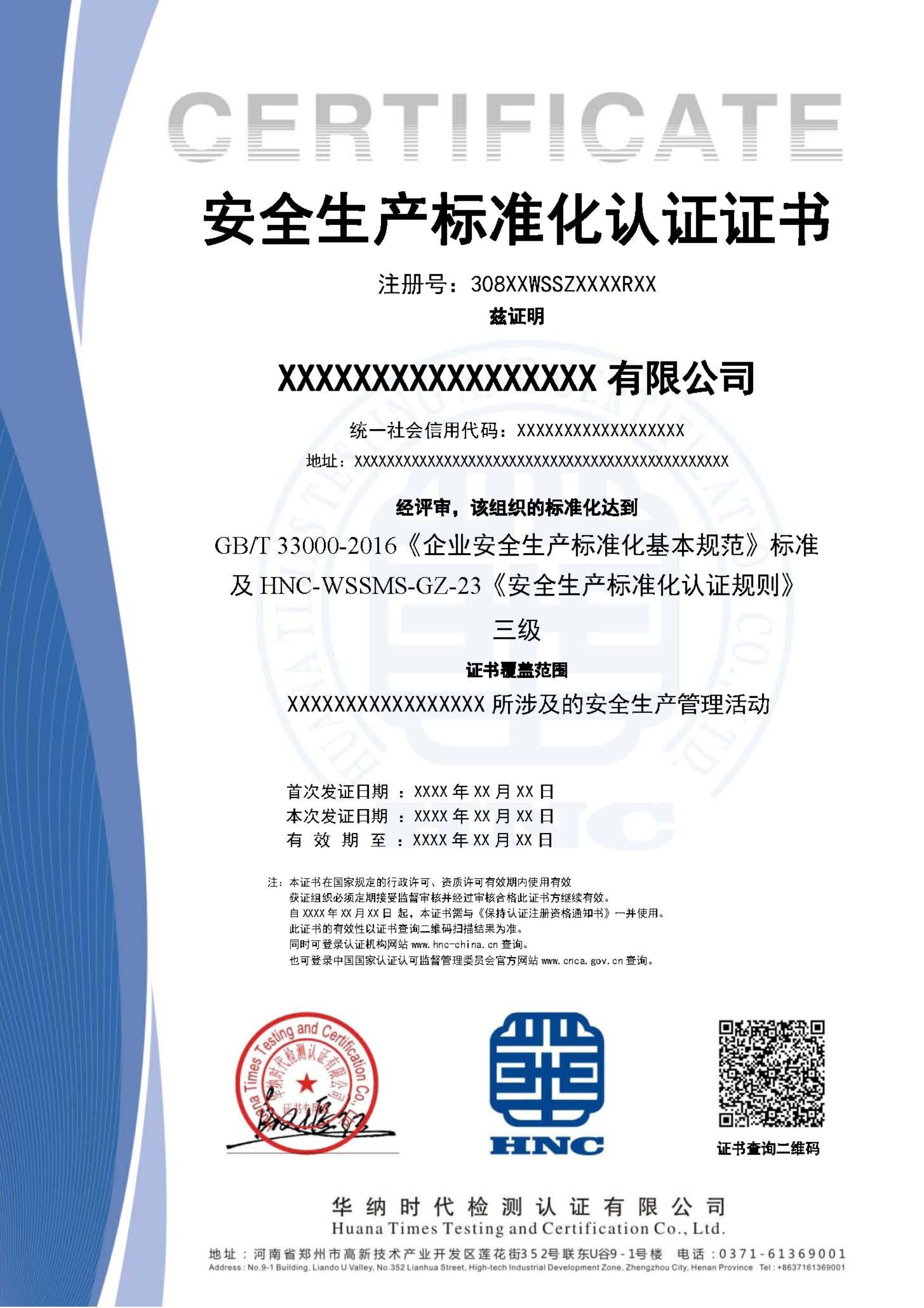 安全生产标准化管理体系认证根据机构架构的创建、职位的设置、岗位工作职责的区划、职位规章制度和步骤的制订从工作人员、工作中场地、机器设备、运营产品品种和环境危害等层面开展合理运作和监管,匹配相关安全生产标准化体系认证,以超过工作人员安全性、质量承诺、生态环境保护、消费者满意和公司获益的这种宏观经济的管理模式。通过安全生产标准化体系认证,可展现公司保证服务水平平稳,追求“零缺陷”的总体目标,对顾客呈现完美品牌形象。