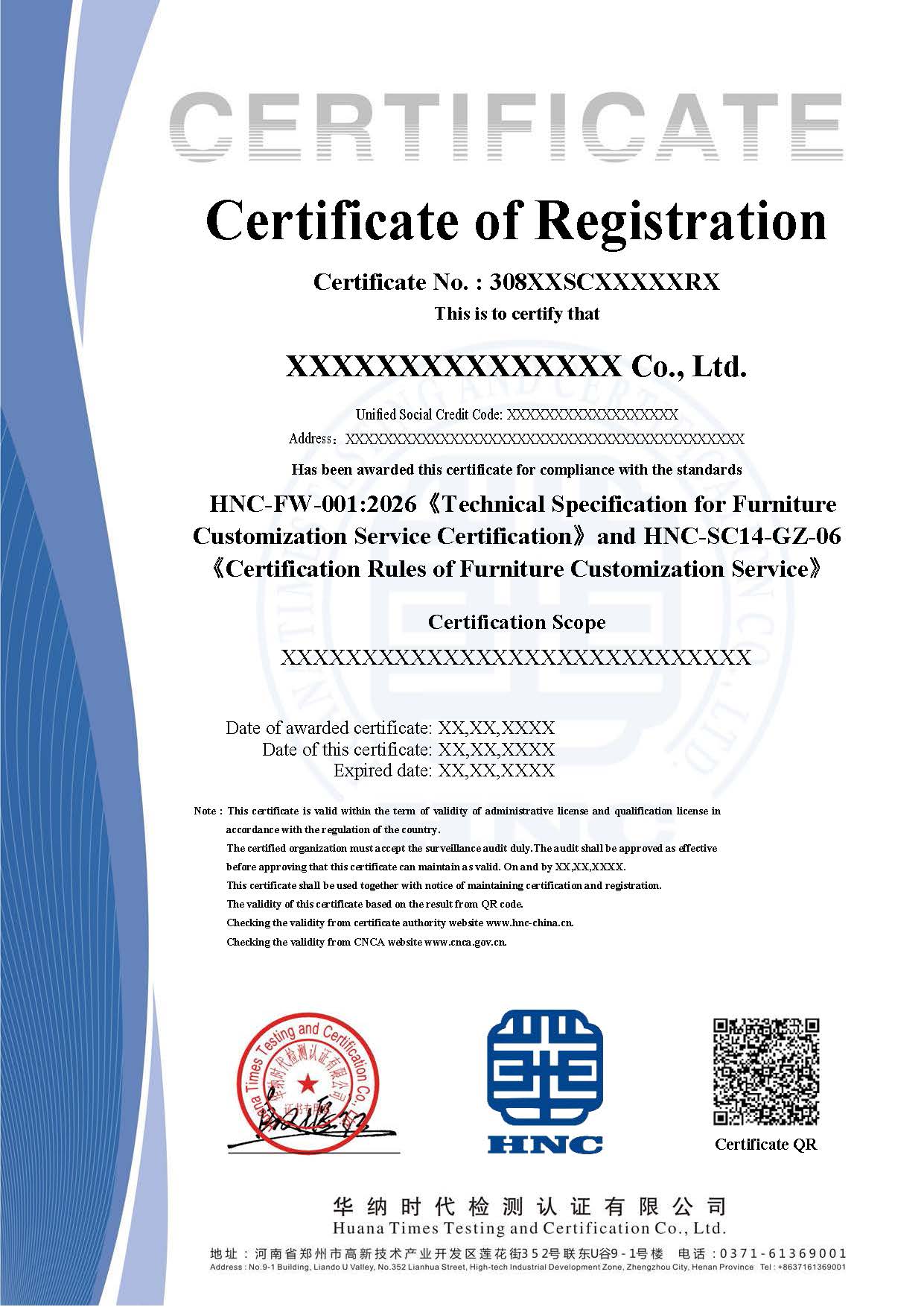 HNC-FW-001:2026 《家具定制服务认证技术规范》
